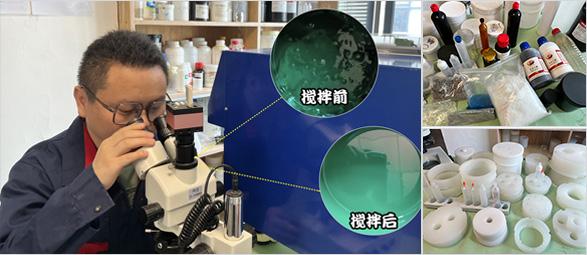 經過我們前期的溝通,我們給研究院做了一份詳細的消泡方案。客戶選擇了我們的物理消泡方式來處理新材料氣泡。客戶對我們天行健真空攪拌脫泡機非常認可,希望能夠帶著樣品親自上門試樣。我們袁總對此非常重視,親自陪同輔導我們完成本次試樣